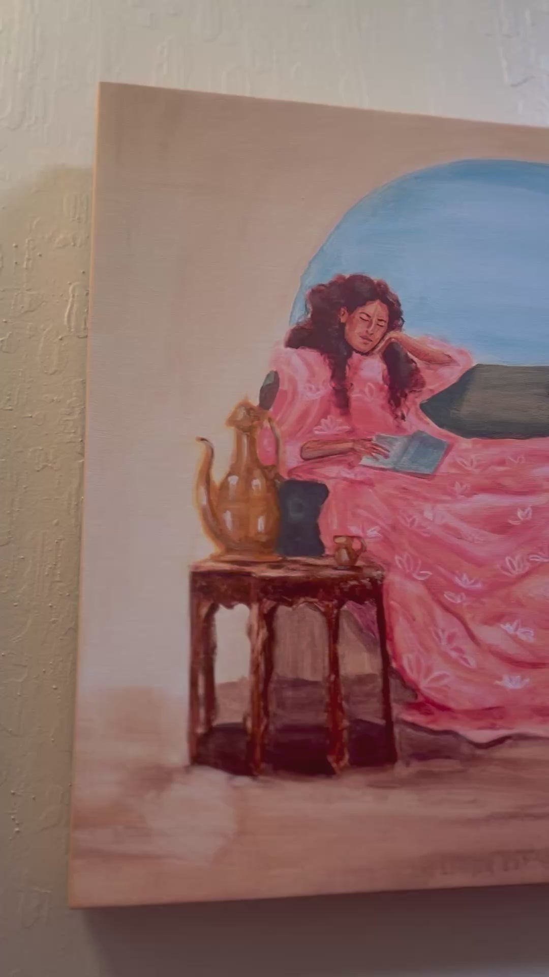 Pink Dreams is a soft meditation on rest and dreaming. Bathed in gentle pink tones, this piece invites calm, warmth, and quiet presence into any space. Part of the Resting in Muʻumuʻu series, it honors rest as something tender and necessary.